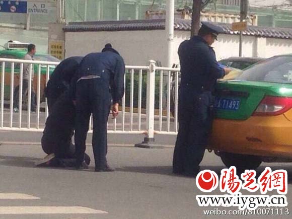 記者聯(lián)系上了當(dāng)時(shí)就在現(xiàn)場(chǎng)的出租車司機(jī)張師傅,他告訴記者,昨天上午十點(diǎn)半左右,自己開車到北客站附近,在北客站與文景路丁字口看到一位五六十歲的出租車司機(jī)跪在地上給三名穿著制服的運(yùn)政工作人員磕頭,其中兩人一直要把司機(jī)拉起來,有一人則趴在后備廂開罰單。旁邊公交站牌等車的人,看到這一幕紛紛拿起手機(jī)拍照,而出租車司機(jī)絲毫沒有起來的意思。