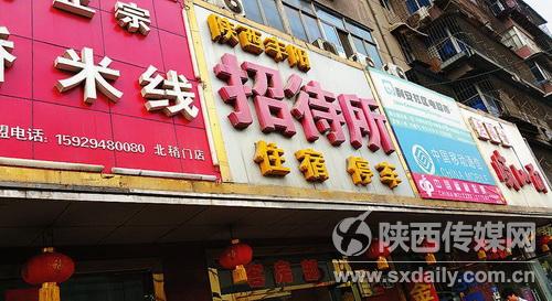在北關正街41號的山陽縣駐西安辦事處,遠遠就可以看見本來粘在整棟樓側面墻上非常顯眼的“山陽縣駐西安辦事處”廣告字已經取下,留下粘貼多年的印記。而字體下方的原駐省辦招待所,名為“陜西豐陽招待所”,擠在一堆小吃店和便利店之間。在招待所了解到,山陽縣駐省辦是在過年后全部撤走的,現(xiàn)在已不復存在。