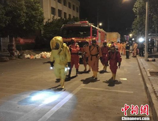 險情發(fā)生后,當?shù)叵嚓P(guān)部門迅速對現(xiàn)場進行了封鎖,對居住在附近的居民進行了轉(zhuǎn)移疏散,同時在離事發(fā)地點150米外拉起了警戒線,禁止人員進入,同時調(diào)集公安、民兵等人員前往現(xiàn)場參與處置。接到險情求助后,當?shù)叵啦块T也派出了40多人前往現(xiàn)場?,F(xiàn)場一位目擊者稱,消防官兵抵達現(xiàn)場后,身穿化學防化服深入事發(fā)地,救援轉(zhuǎn)移出一名8歲男孩和一名六旬癱瘓老人。隨后多次進入倉庫偵查,當?shù)毓?、安監(jiān)等部門抵達現(xiàn)場指揮研究處置具體方案。