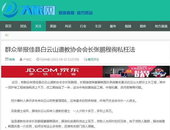 群眾舉報佳縣白云山道教協(xié)會會長張鵬程徇私枉法