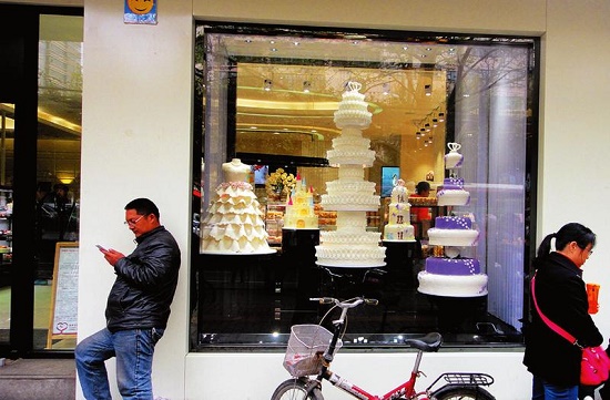 此事當(dāng)真?昨天下午,在這家蛋糕店外,離得老遠(yuǎn)就能看到擺在櫥窗里的幾個(gè)蛋糕,這些蛋糕個(gè)頭都比較大,最大的純白色蛋糕,共有9層,目測(cè)2米多高。