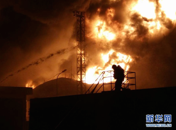 多名現(xiàn)場目擊者稱,PX工廠爆炸巨響后,火光照亮夜空,濃煙滾滾,附近居民感覺到劇烈震動。