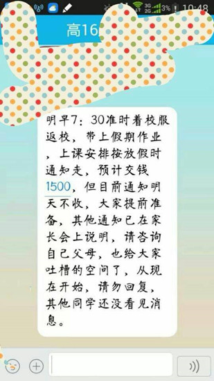 不愿意透露姓名的中學生提供的關(guān)于寒假補課的通知。