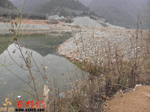 建筑垃圾把河道堵了很大一部分