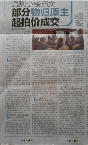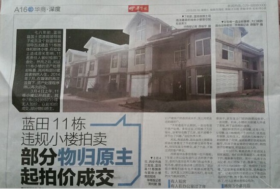 藍田11棟違規(guī)小樓拍賣 部分物歸原主 起拍價成交