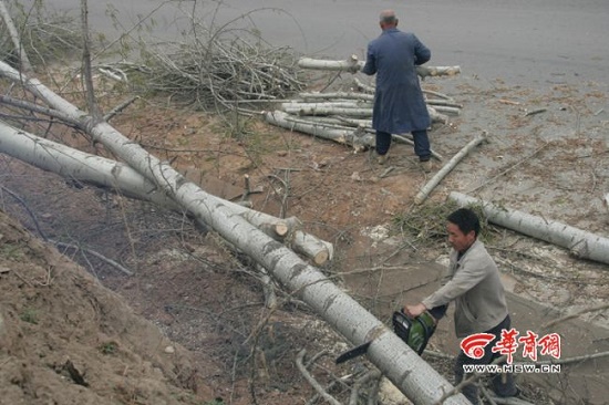 已經(jīng)長了20多年34棵楊樹被鋸斷