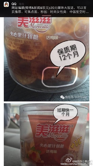 據(jù)新浪微博爆料:3月15日,安先生反映,自己在好日子買了一些食品,其中就有過期食品“美滋滋”糖,幸虧孩子沒有吃,要不后果真不堪設(shè)想。微評:好日子超市將過期食品售賣顧客,對顧客的食品安全很不負(fù)責(zé),相關(guān)部門應(yīng)該嚴(yán)厲打擊出現(xiàn)這類情況。