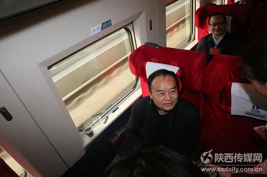 3月2日上午,住陜?nèi)珖舜蟠沓烁哞F離陜赴京,參加3月5日開幕的十二屆全國人大三次會議。途中,代表們抓緊時(shí)間完善建議,被隨團(tuán)的各路新聞媒體記者“包圍”。