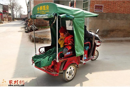 由于上了年紀(jì),姚富國(guó)特意買了輛電動(dòng)三輪車?yán)赣H外出。