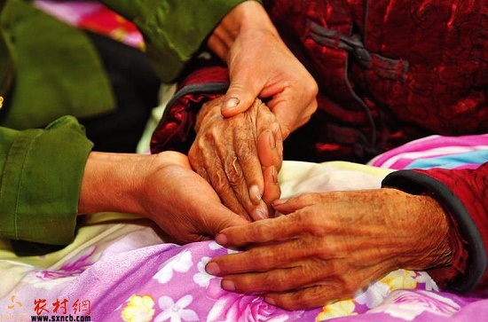 姚富國(guó)為母親搓手。