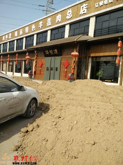 羊肉店門(mén)口被土堆堵住