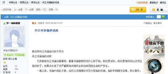 網(wǎng)曝丹江河道偷砂成瘋 商洛市丹江河道站行政不作為