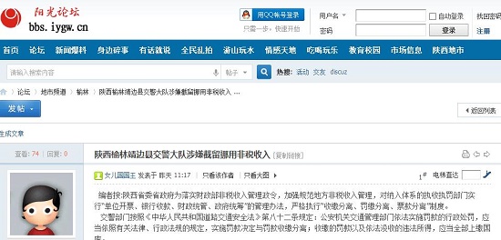 2014年10月17曰上午,記者在陜西靖邊縣交警大隊違章處理大廳走訪時發(fā)現(xiàn)該部竟然設(shè)有違章處罰收費崗,收費崗卻沒有人,違章罰款直接交到違章信息消除崗;而收費的工作人員竟是一名交警而非銀行代收員;所開票據(jù)不是全國統(tǒng)一的罰沒票據(jù),而是地方財政局印制的非稅收入收款票據(jù)。