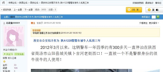 網(wǎng)曝西安市公安局不作為 陜A1228警警車被私用三年