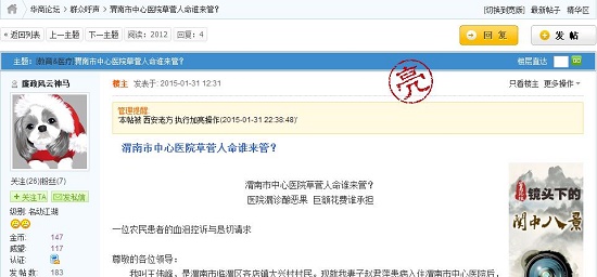 渭南市中心醫(yī)院草菅人命誰來管?