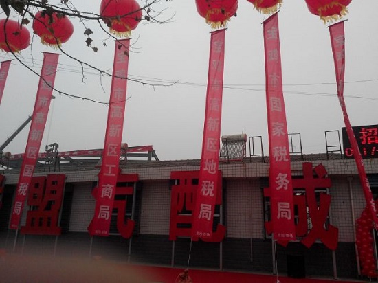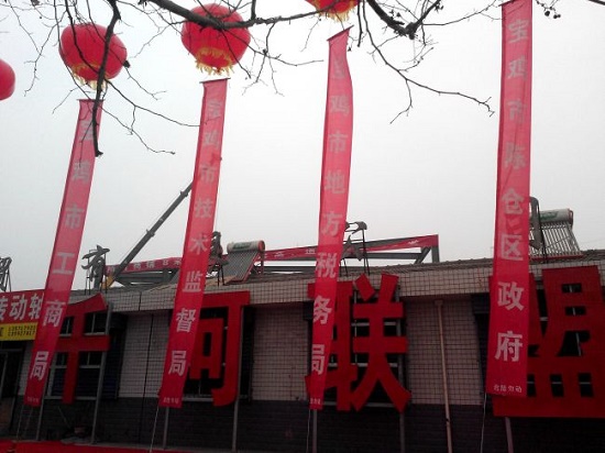 根據(jù)該市民提供的照片可以看到,祝賀條幅中,不僅有寶雞市高新區(qū)管委會、寶雞市陳倉區(qū)政府、寶雞市千河鎮(zhèn)政府等各級政府,還有寶雞市工商局、寶雞市技術(shù)監(jiān)督局、寶雞市地方稅務(wù)局、寶雞市國家稅務(wù)局、寶雞市高新區(qū)工商局、寶雞市高新區(qū)地稅局、寶雞市陳倉區(qū)地稅局、寶雞市高新區(qū)技術(shù)監(jiān)督局等行政執(zhí)法部門。