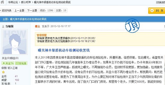 網(wǎng)曝神木銀盾機(jī)動(dòng)車檢測站收黑錢