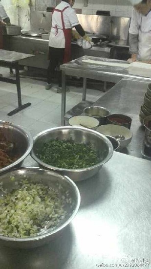 1月19日下午1時50分,新浪微博網(wǎng)友@茜-小妞發(fā)帖稱,中午在食堂二樓吃飯,牛肉拉面那一家居然在料理臺上洗衣服,真的是醉了??匆娭笏查g沒有食欲了。真的是一件讓人惡心的事。同時,在微博上還上傳了兩張照片。其中一張顯示,一名系著紅色圍裙的女子背對鏡頭站在灶臺前,旁邊放著一件揉在一起的白色工服。而在女子面前,則擺放著一個不銹鋼的盛菜盆。而就在女子身后,一名男性面點(diǎn)師傅正在揉面。