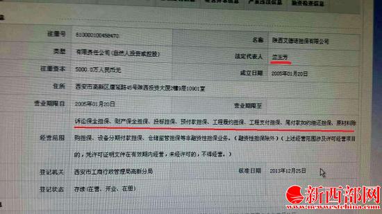 另一位吳老漢告訴記者,自己算是陜西艾德諾擔(dān)保有限公司的老客戶了,從去年12月開始前前后后共投了100多萬元,這些錢不光是他個人的,還有親戚朋友的,這事自己一直瞞著子女,現(xiàn)如今不知如何是好。