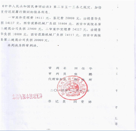“又沒有給我蓋樓,憑啥判我支付工程款?!這法院明顯就是歪嘴和尚念經?!?2月17日,手拿西安市中級法院的終審判決書,高陵縣第二建筑公司經理儲拉鎖情緒非常激動。