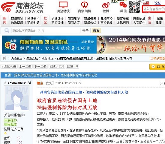 3.商南縣人民政府審批土地件商政地批(2013)03號文件(2013.1.16)批復(fù)王秀華(劉鳳鑫之妻)劃撥用地變更為出讓,批復(fù)用地面積為152.6㎡,并敲明叫響不得超占超建,且不說這塊土地家家戶戶持有建設(shè)用地批準(zhǔn)書。(用地總面積含有道路分?jǐn)偯娣e21.9㎡,各家不等,土地用地批準(zhǔn)書附后)劉風(fēng)鑫經(jīng)商南縣國土局查處,實際建設(shè)面積為188.7㎡,超占面積為35㎡,即占用了自己的公攤面積,又占用國有面積,國土局申請商南法院“強(qiáng)制執(zhí)行”有文有號,商南縣法院2014年4月29號也向劉本人送達(dá)了法律文書,但時到今日,法律失效早已過期,然劉少批多建違法建筑可以說:“任憑國法,法律,統(tǒng)統(tǒng)對我無效,國土也好,法律也罷,我自巍然不動,只要能來錢,頂著風(fēng)也上?!?/p>