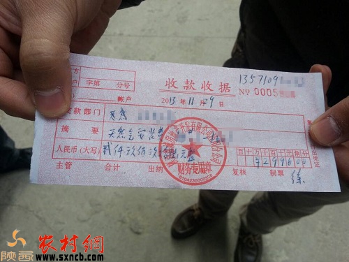 業(yè)主向記者展示自己所繳納2996元天然氣安裝費(fèi)收款收據(jù)