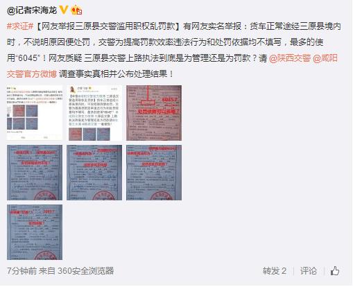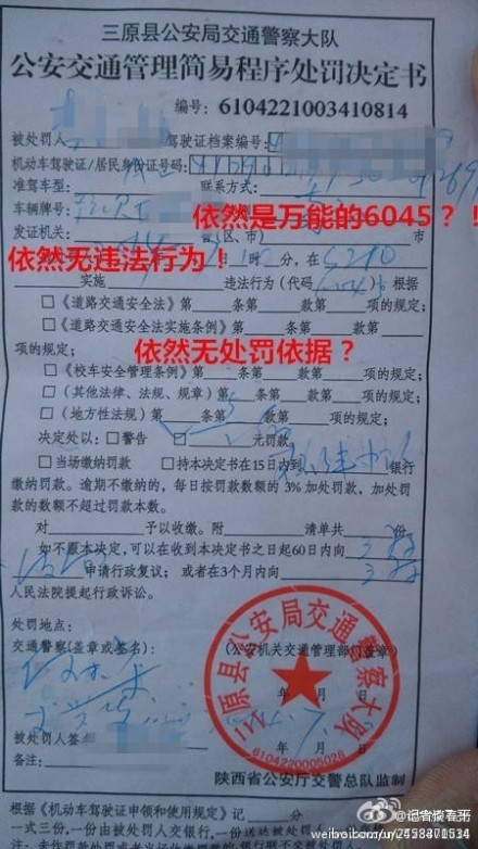 有網(wǎng)友實(shí)名舉報(bào):貨車正常途經(jīng)三原縣境內(nèi)時(shí),不說明原因便處罰,交警為提高罰款效率違法行為和處罰依據(jù)均不填寫,最多的使用“6045”!網(wǎng)友質(zhì)疑三原縣交警上路執(zhí)法到底是為管理還是為罰款?請@陜西交警@咸陽交警官方微博調(diào)查事實(shí)真相并公布處理結(jié)果!