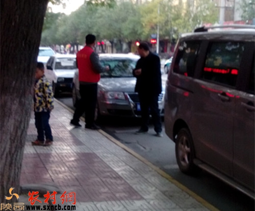 記者將車開到鳳翔縣交警大隊門口后,將車??吭诼愤叺呐R時停車位上。