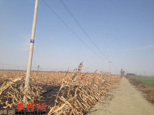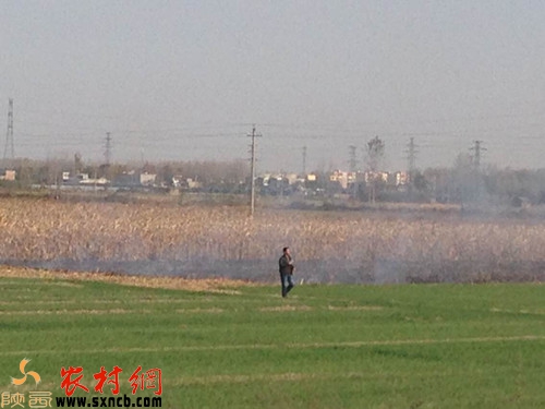 11月12日上午11時許,記者途經(jīng)華陰市羅敷鎮(zhèn)橫西村時,在公路北邊看到一處燃燒玉米秸稈的現(xiàn)象。