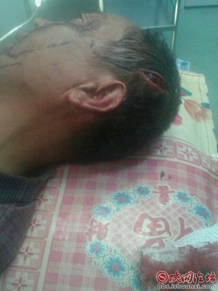 在病房里,受傷老太李某閉著眼睛向記者訴說自己的遭遇:2012年3月份,他們通過自家的親戚李永成做擔(dān)保,向神木縣寶鼎金屬鑄造有限公司的總經(jīng)理薛廣彪以月3分利貸款78萬,12年的利息已付清,但從13年開始,薛廣彪將不再還款,他們多次催促,都無濟(jì)于事。今年秋季因?qū)W生上學(xué),李大娘及其兒子康某又多次向薛總索要欠款,最后薛總在10月25日給他們打電話,讓其來家里取。晚上8點多,薛總回家后,卻將7旬老太從凳子上拉下來毆打。老太左手腕被踩傷,后用菜刀平面在老人臉上亂拍,牙齒被打掉幾顆,左耳朵直流鮮血,右嘴角有一道深深的傷疤,整個臉腫脹著。老太無力地說,“他用菜刀抵著我脖子說,你死哈(下)了?一兩個我埋起了?!眱鹤涌的尺M(jìn)屋后,在無防備的情況下,被薛某用菜刀砍向頭部,“醫(yī)生說,血已經(jīng)滲到大腦里頭了,骨頭也裂開了縫”,康某妻子說。