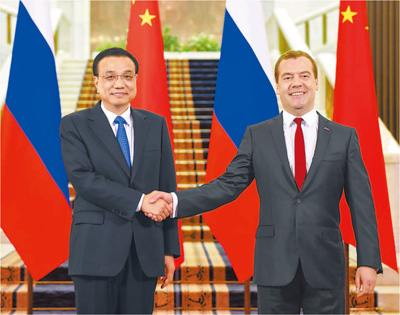李克強表示,中俄互為最大鄰國和重要伙伴,同為主要新興市場國家,加強合作有利于世界的和平與發(fā)展。兩國元首今年已多次會晤,中俄總理舉行了19次定期會晤,這充分表明中俄關(guān)系的戰(zhàn)略性、穩(wěn)定性和長期性。中方愿與俄方共同努力,充分挖掘兩國合作的巨大潛力,將中俄高水平的全面戰(zhàn)略協(xié)作伙伴關(guān)系轉(zhuǎn)化為更多實際合作成果,不斷充實中俄關(guān)系內(nèi)涵,惠及兩國和兩國人民,這也有利于促進地區(qū)穩(wěn)定和世界經(jīng)濟復(fù)蘇。