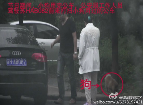 舉報人高建超在此前接受相關(guān)媒體採訪時稱,他和被舉報人曾共事不到一年,“自己和舉報對象有一些私人恩怨,但不足為提,此次舉報主要是響應反腐號召?!贝舜闻e報曹興龍,主要是因為其私家使用多部公車,車款涉嫌用非法手段取得。其6月5日就向紀檢部門遞交了相關(guān)舉報材料和証據(jù),但是一直沒有進展,於是採用了實名發(fā)帖的方式。帖子發(fā)出去后,他感到“周圍的許多壓力”。圖中文字為:節(jié)日期間,小狗用完公車,公安局工作人員駕駛蘇HAB082前來打掃小狗用過的公車。
