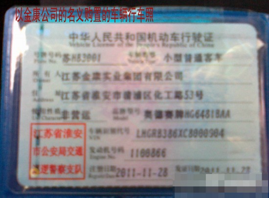 高建超在網(wǎng)帖列舉了曹某“公車私用”、“徇私舞弊”和“經(jīng)濟問題”。網(wǎng)貼稱:“局長、小狗、家人用奔馳、奧迪、廣本奧德賽等五部公車,車輛涉嫌用犯罪手段取得。公安局在查辦周某(原清浦區(qū)黃碼鄉(xiāng)副鄉(xiāng)長)等人賭博刑事案件時,局長在收到十幾名涉嫌犯罪人員交納的170多萬元后未追究任何人任何責任,涉嫌徇私舞弊犯罪。局長將辦理此類案件的錢以保安清浦大隊的名義存入江蘇銀行人民南路支行帳戶,動用該帳戶資金以金康公司名義購置蘇H83001等汽車,大肆揮霍,涉嫌其它嚴重經(jīng)濟問題”,記者昨天下午致電金康公司,該公司網(wǎng)站上的登記電話無法接通。圖中文字為:公車來了以后,局長坐蘇H83001,小狗坐H83010上京滬高速往泰州。