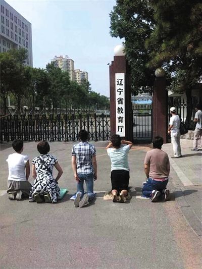 近日,遼寧音樂學(xué)院考生家長在遼寧省教育廳門前下跪,為孩子落榜討說法。圖/東方IC