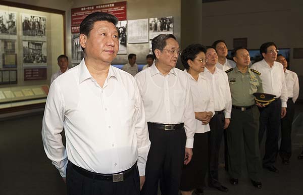 抗戰(zhàn)紀(jì)念館新增習(xí)仲勛展板 習(xí)近平駐足觀看