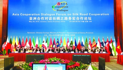 在交流中尋求發(fā)展共識,在合作中開拓共贏之道。由外交部和我省共同主辦的亞洲合作對話—絲綢之路務(wù)實合作論壇5月28日在蘭州舉行。與會各國代表圍繞“振興陸上海上絲綢之路,構(gòu)建亞洲區(qū)域經(jīng)濟(jì)一體化新格局”這一主題,就建設(shè)“絲綢之路經(jīng)濟(jì)帶”、“21世紀(jì)海上絲綢之路”深入交換意見,共商交流合作大計,共襄繁榮發(fā)展良策,達(dá)成了廣泛共識,取得了豐碩成果。