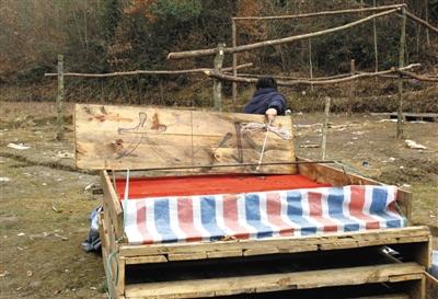 老山村一位村民告訴新京報(bào)記者,爆炸地點(diǎn)原本是一塊荒地,一個(gè)多月前開始,有人用拳頭粗的木棒,覆以藍(lán)色防雨塑料布,支起一個(gè)面積約20平米的大棚?!俺R娨恍┠吧司墼诖笈锢镔€博?!?/p>