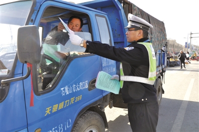 12月15日,銀川市興慶區(qū)交警二大隊的執(zhí)勤民警在人流相對比較集中的農(nóng)貿(mào)集市,向貨運車輛駕駛員發(fā)放交通安全宣傳材料。