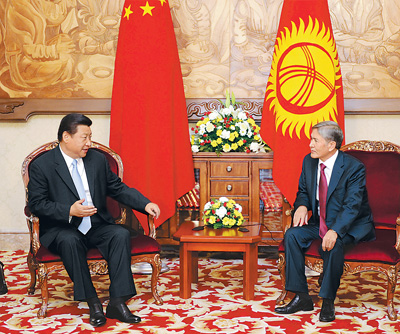 習(xí)近平指出,中吉唇齒相依、休戚與共。我們對兩國關(guān)系的最大心愿就是希望長期睦鄰友好。這也是兩國人民的共同愿望。兩國建立戰(zhàn)略伙伴關(guān)系是中吉關(guān)系新的里程碑,具有重大深遠(yuǎn)意義。雙方要政治上相互支持,安全上密切配合,經(jīng)濟(jì)上互利合作,將中吉關(guān)系建設(shè)成平等、信任、合作、共贏的鄰國關(guān)系典范。
