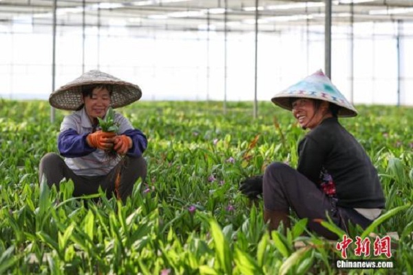 現(xiàn)代中藥材種植成為貴州丹寨農(nóng)村增收“新路子”。圖為3月14日,苗族婦女在白芨種植大棚內(nèi)勞作。賀俊怡 攝