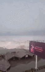 視頻中顯示巨大的“浪墻”僅用數(shù)十秒就從天邊撲向城鎮(zhèn),如排山倒海,速度極快。