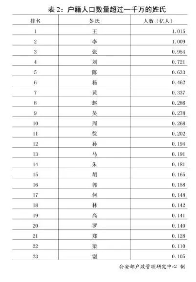 哪五個(gè)姓氏人口數(shù)量最多?