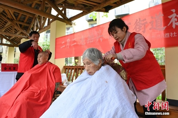 資料圖:幾位愛(ài)心志愿者在重慶一養(yǎng)老院為老人們免費(fèi)理發(fā)。中新社記者陳超攝