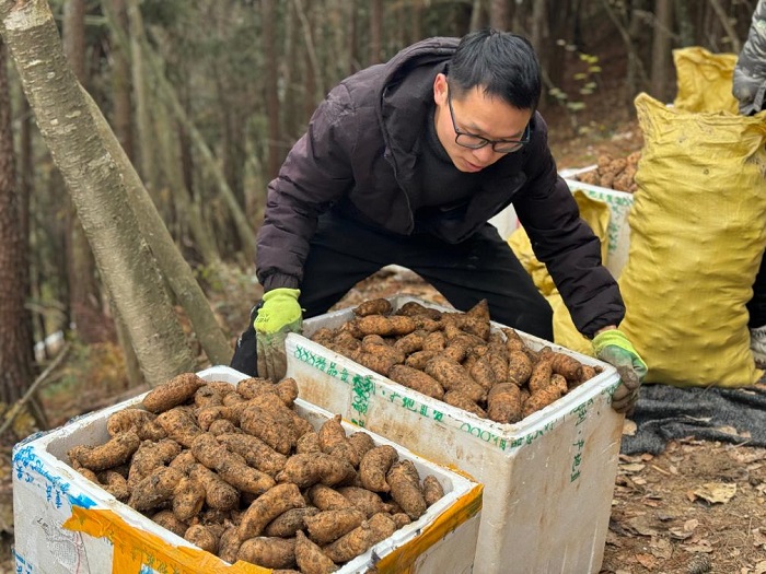 天麻是菌異養(yǎng)植物,需要寄生在蜜環(huán)菌等木腐菌上,因此需要大量木材種植。以前農(nóng)民自己在地里種植天麻,會(huì)偷偷砍伐木材,破壞生態(tài)。而仿野生天麻種植基地中用到的木材很大部分來自于間伐產(chǎn)生的木材。