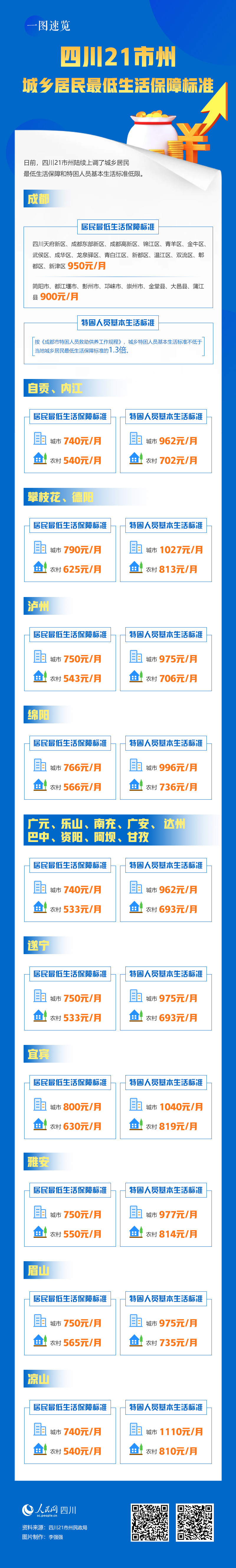 一圖速覽四川21市州城鄉(xiāng)居民最低生活保障標(biāo)準(zhǔn)