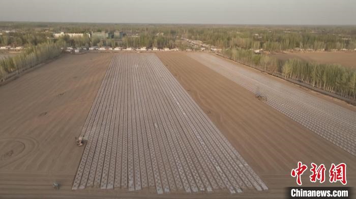 新疆巴州尉犁縣的百萬畝棉田里,棉花春播工作也正在有條不紊的進(jìn)行當(dāng)中。(汪志鵬 攝)