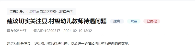 有回音丨網(wǎng)友建議關(guān)注鄉(xiāng)村幼兒教師待遇問題 寧夏:積極落實(shí)