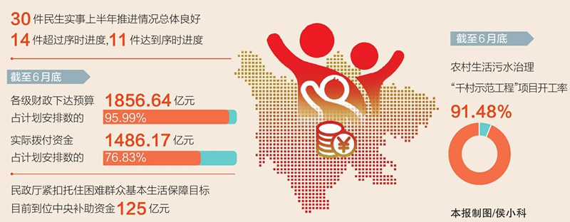 數(shù)據(jù)顯示,截至6月底,各級(jí)財(cái)政下達(dá)預(yù)算1856.64億元、占計(jì)劃安排數(shù)的95.99%,實(shí)際撥付資金1486.17億元、占計(jì)劃安排數(shù)的76.83%,資金安排進(jìn)度總體較好。