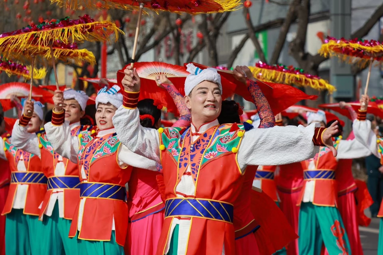 陜北秧歌游街表演在榆林城區(qū)舉行。楊彬攝