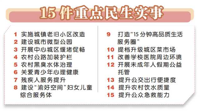 3月22日,重慶日報記者從市政府網(wǎng)站獲悉,《重慶市2025年重點民生實事工作目標(biāo)任務(wù)》(以下簡稱《目標(biāo)任務(wù)》)已正式印發(fā)。來看看今年重慶的15件重點民生實事,安排了哪些目標(biāo)任務(wù)?